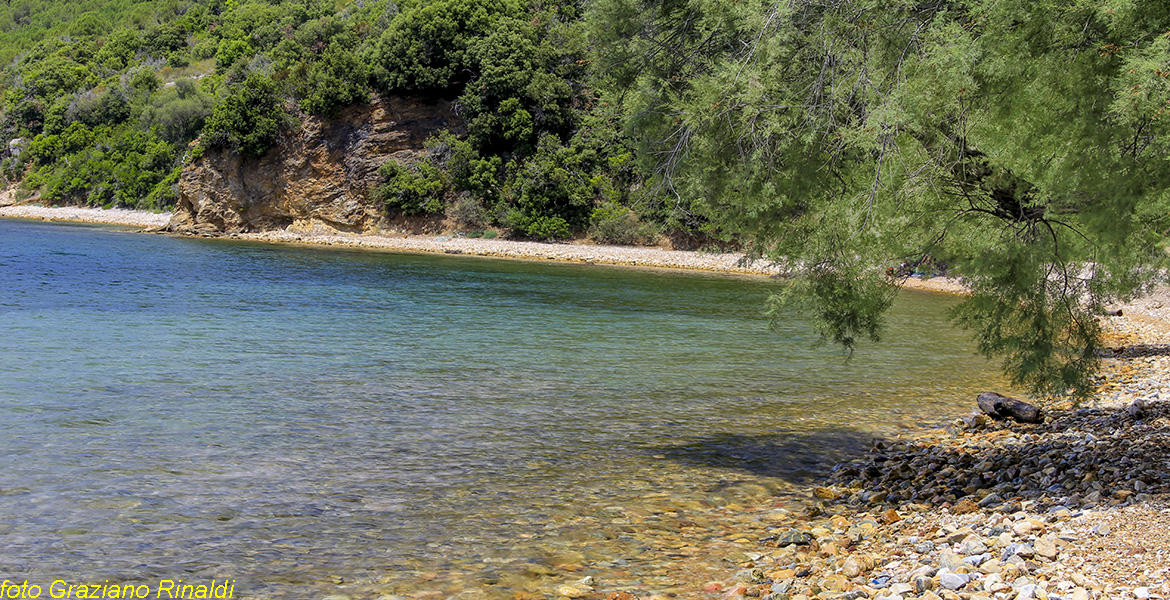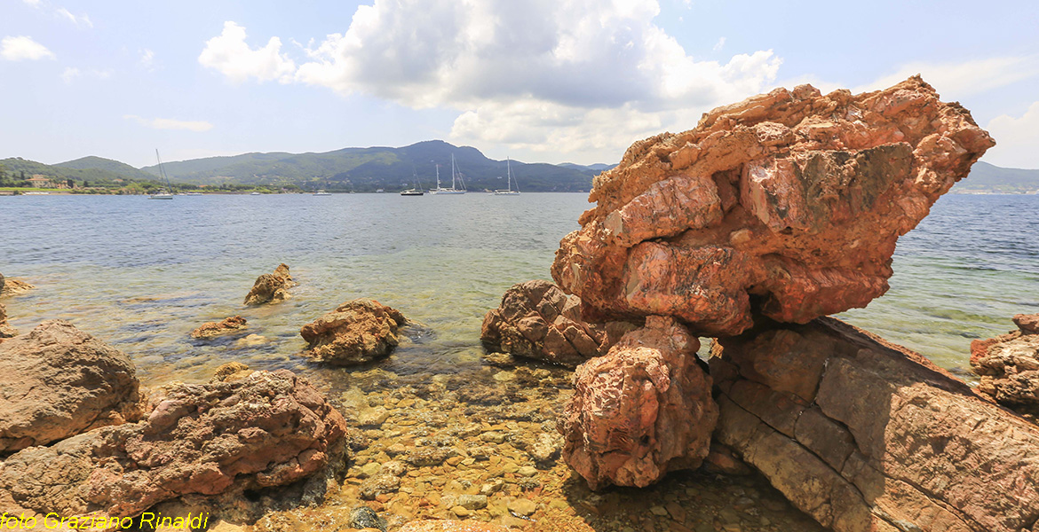 Es gibt eine andere Charaktereigenschaft dieser reizenden Bucht, die verdient, dass an sie erinnert wird und die sie nicht verpassen werden, zu bemerken.. Wenn sie sich nicht am ersten Stück Strand/Kiesel aufhalten, versucht von der Frische der Tamarisken am Meer und dem weichen Teppich aus trockenen Blättern des Seegrases, sondern weiter gehen werden Richtung Osten und eine einfache Furt überqueren, entstanden durch einen Felsvorsprung, der so ins Meer ragt, dass er die Bucht in zwei teilt, werden sie in die Welt des rosa Kalkgesteins eintauchen,ein Ablagerungsgestein, das mit mächtigen Schichten, manchmal sogar vertikal, diesen zweiten Teil der Bucht belegt. Die warmen Farben des Felsenriffs, die unerwartete Einsamkeit (nicht immer!) des Ortes, das wunderschöne Cosmopolis (Portoferraio) genau auf der anderen Seite des Golfes und die Hügel, die zum Monte Capanne verschwimmen, schaffen eine äußerste besondere Atmosphäre und von großer ästhetischem Wirkung, von der sie eine Zusatzdosis genießen können, wenn sie das Pflaster aus dem sechzehntem Jahrhundert in den Straßen von Portoferraio bewundern werden, die genau aus diesem Gestein gebaut wurden.